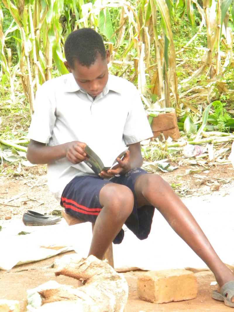 The picture above is of a student at the Mercy Land, reading his new bible.